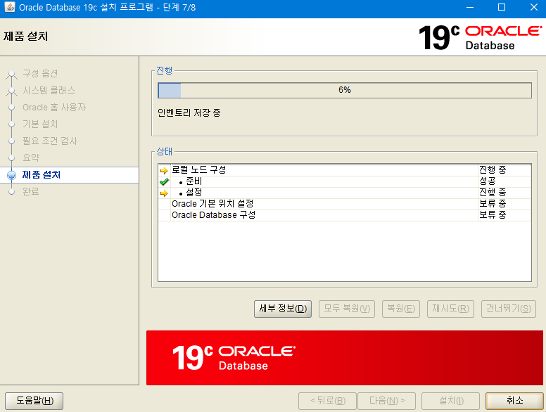 8. 필요조건 검사 - 오라클 설치에 충분한 컴퓨터 사양인지를 체크하게 됩니다.